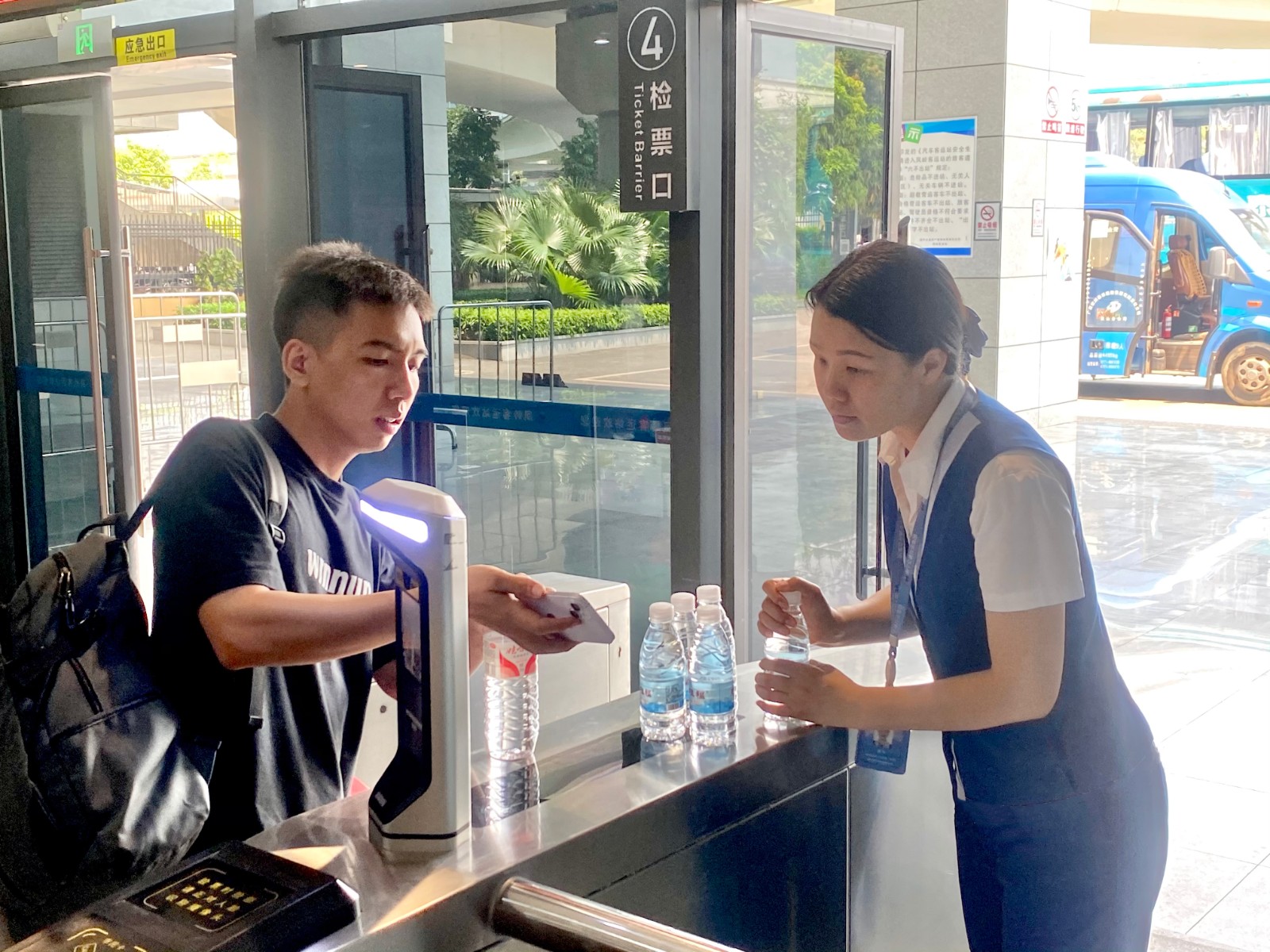 售票員微笑面對乘客,耐心為旅客答疑解惑,幫助旅客提供最佳出行選擇;“三品”檢查員認真做到“逢包必檢、逢液必查”,保障旅客安全出行;檢票員嚴格查驗車輛及駕駛員證件,熱情招呼旅客檢票乘車,為來往的旅客做好乘車引導(dǎo)服務(wù);安全檢驗員認真做好車輛發(fā)車前安全設(shè)施設(shè)備檢查及發(fā)車前安全告知工作。
