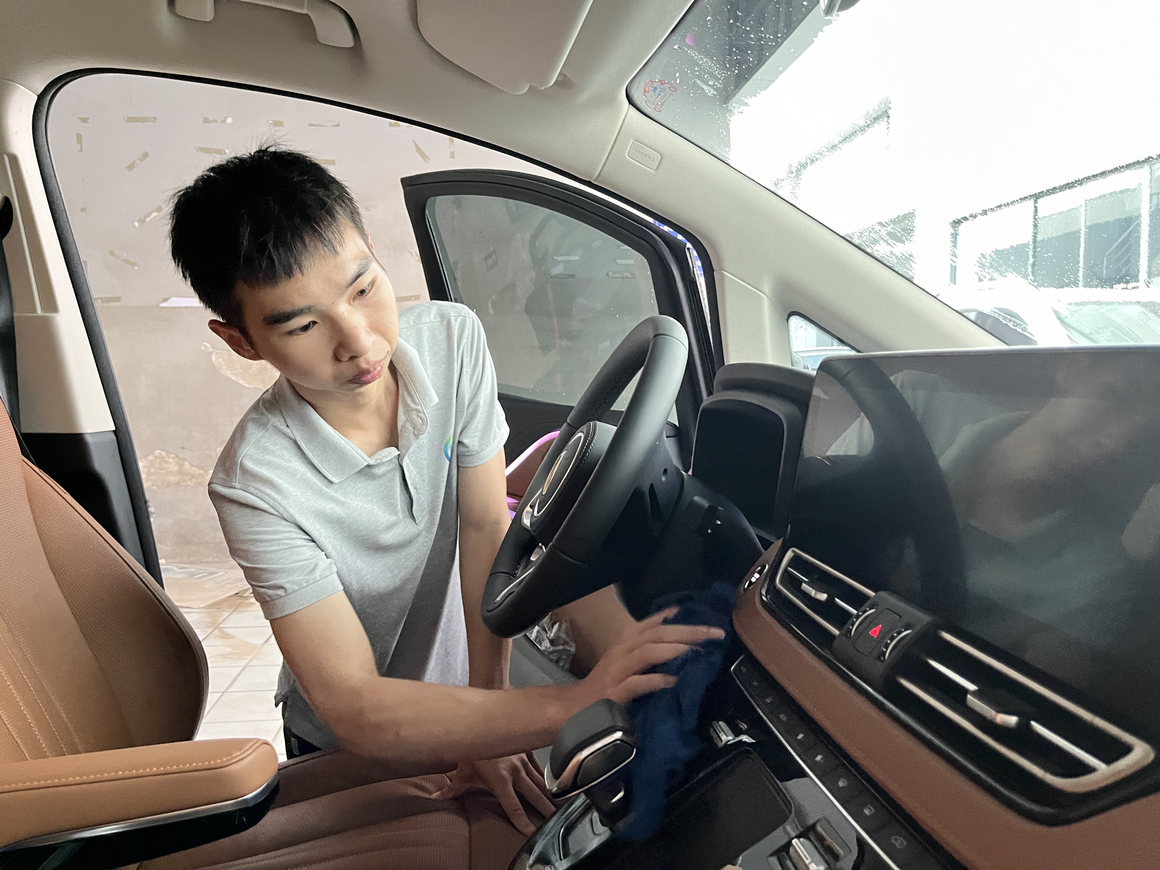 五一假期,自駕游需求持續(xù)升溫,租車市場也迎來了小高峰,康大汽車租賃公司為確??蛻粼诼糜胃叻鍟r段能快速取車,擁有愉快的用車體驗,租賃業(yè)務員們對出租車輛進行認真環(huán)檢和清潔。