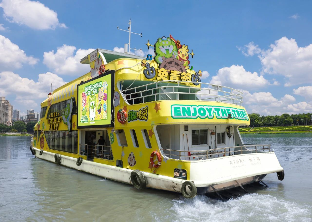全國(guó)首艘“蔬菜精靈”IP主題游船在南寧民生旅游碼頭啟航